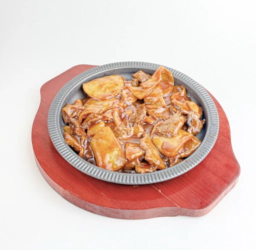 обжаренная говядина с хрустящим картофелем, с добавлением чеснока, в затяжном соусе на основе китайских специй.